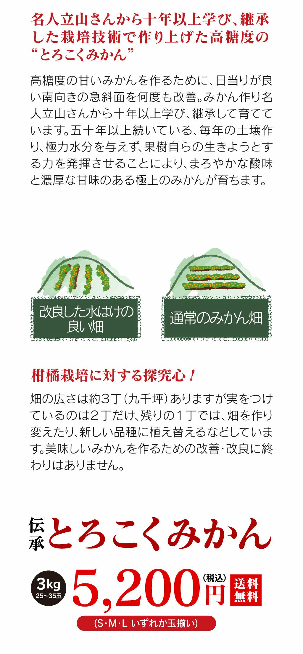 他の画像を見る 日本三大名匠といわれる立山さんから引き継ぎ極甘のみかんをつくる前田農園さんより直送 伝承とろこくみかん 3kg(25-35玉前後)前田農園さんの特選ミカン <10月下旬より順次出荷> 送料無料 プレミアム 温州みかん ギフト プレゼント 大嶌屋(おおしまや) 価格 ¥ 5,200 税込 詳細を見る お気に入りに登録する