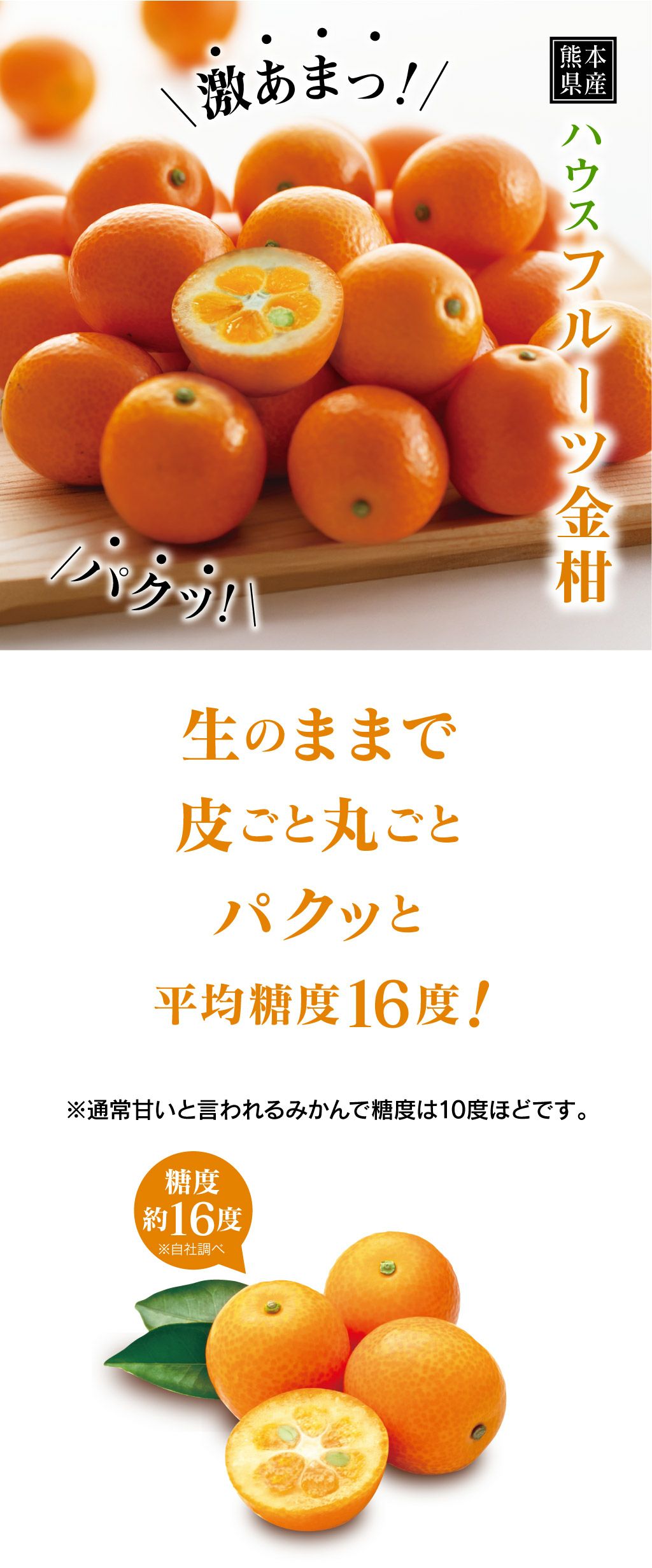 他の画像を見る きんかんの常識をくつがえした美味しさ!生のままで皮ごとパクッ! ハウスフルーツ金柑 2kg 送料無料 <11月上旬より出荷予定> 片山農園 フルーツ 果物 農家直送 熊本産 おおしま屋 大嶌屋(おおしまや) 価格 ¥ 5,200 税込 カートに入れる お気に入りに登録する