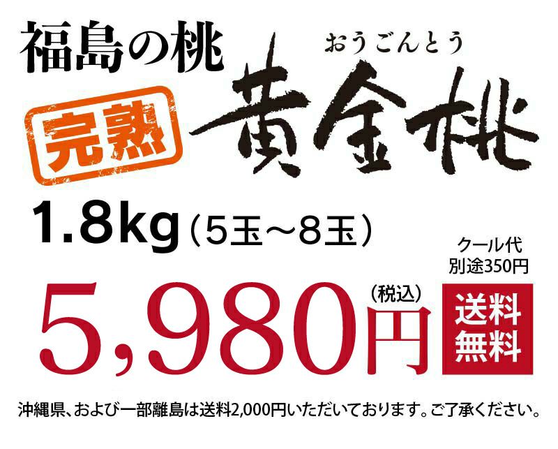 他の画像を見る 桃の名産地福島よりもぎたて!黄色い桃 黄桃 福島の桃 黄金桃 1.8kg(5玉-9玉)8月中旬-下旬出荷 <送料無料・冷蔵便・クール代別途> 産地直送 農家直送 福島県産 果物 フルーツ 大嶌屋(おおしまや) クール代別途 価格 ¥ 5,980 税込 在庫切れ 詳細を見る お気に入りに登録する
