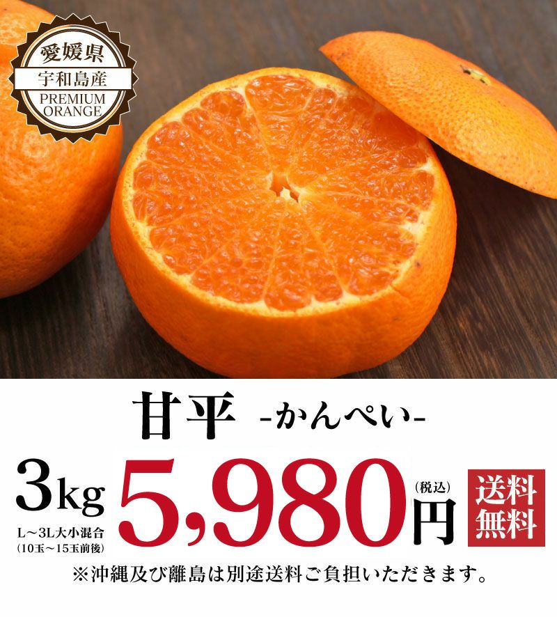甘平 かんぺい 3kg (約10玉-15玉前後 L-3Lサイズ混合) 送料無料 愛媛県宇和島産 減農薬栽培 エコえひめ 山下農園 小傷あり ミカン <2月中旬より順次出荷> 果物 フルーツ 大嶌屋(おおしまや)