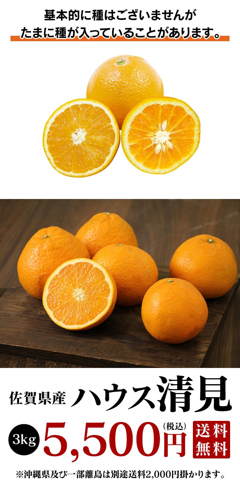 他の画像を見る 新品種ブランドみかんの始祖 【初回限定】清見オレンジ 2kg 送料別 <同住所に2箱以上で送料無料> 2月下旬より順次出荷予定 1セットのみご購入の際は送料を追加いたします 価格 ¥ 1,990 税込 産地直送 カートに入れる お気に入りに登録する