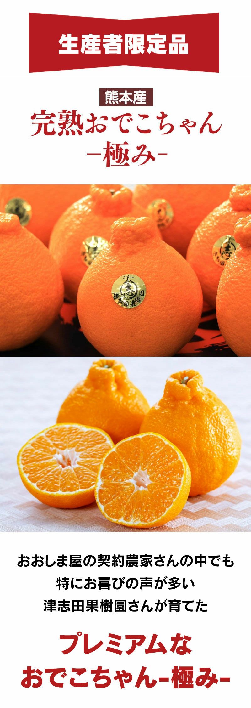 他の画像を見る 初めてのお客様限定 【初回限定】匠の目利きおでこちゃん 2kg 送料別 同住所2箱以上で送料無料(ご自宅用 ご家庭用 大小サイズ混合 小傷あり デコが出てない物もあります)<3月中旬よりご注文順に順次出荷> ※2箱で送料無料です。1配送先の数量が1箱の場合はご注文後、送料1,100円(沖縄および離島は2,000円)を追加いたします。 価格 ¥ 1,990 税込 カートに入れる お気に入りに登録する