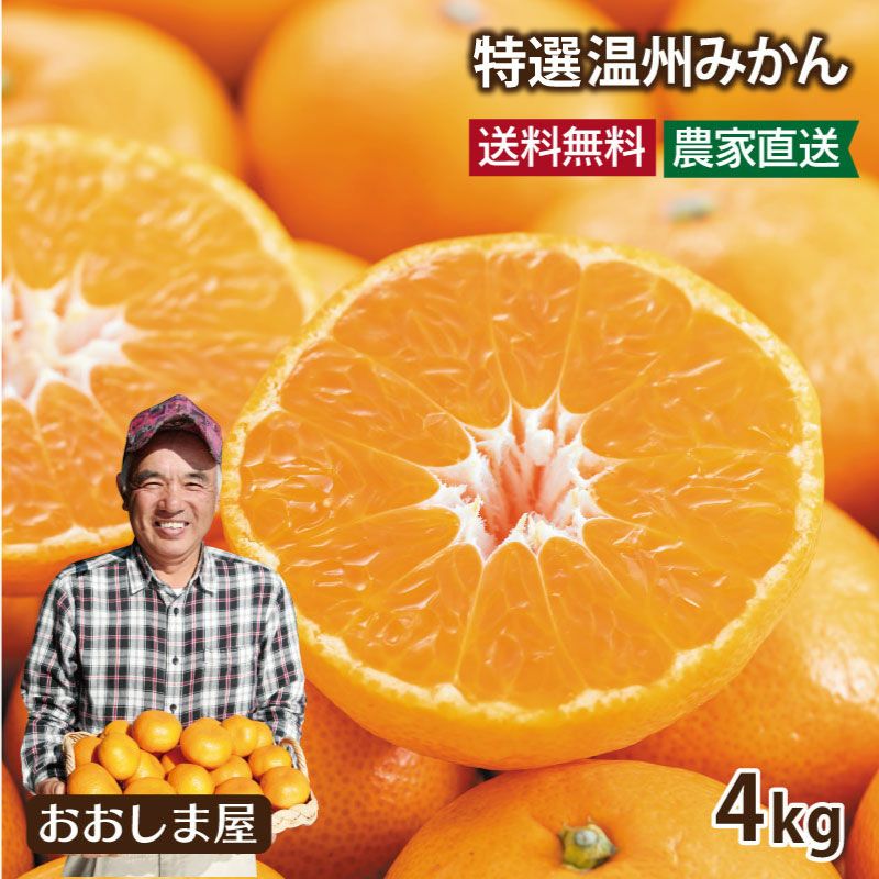 特選 完熟温州みかん 4kg 送料無料 <11月上旬から順次出荷開始> 玉揃い 粒揃い ギフト プレゼント 国産 ミカン 柑橘 フルーツ 果物 農家直送 産地直送 大嶌屋(おおしまや) 【045-1168】