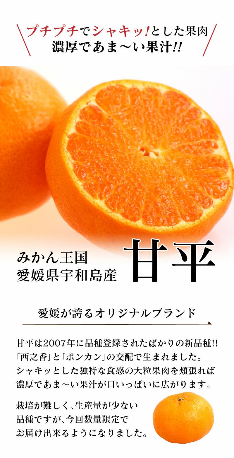 他の画像を見る プチプチでシャキッとした極甘果肉!愛媛ブランドみかんを農家直送でお届け!! 甘平 かんぺい 3kg (約10玉-15玉前後 L-3Lサイズ混合) 送料無料 愛媛県宇和島産 減農薬栽培 エコえひめ 山下農園 小傷あり ミカン <2月中旬より順次出荷> 果物 フルーツ 大嶌屋(おおしまや) 価格 ¥ 5,980 税込 在庫切れ 詳細を見る お気に入りに登録する
