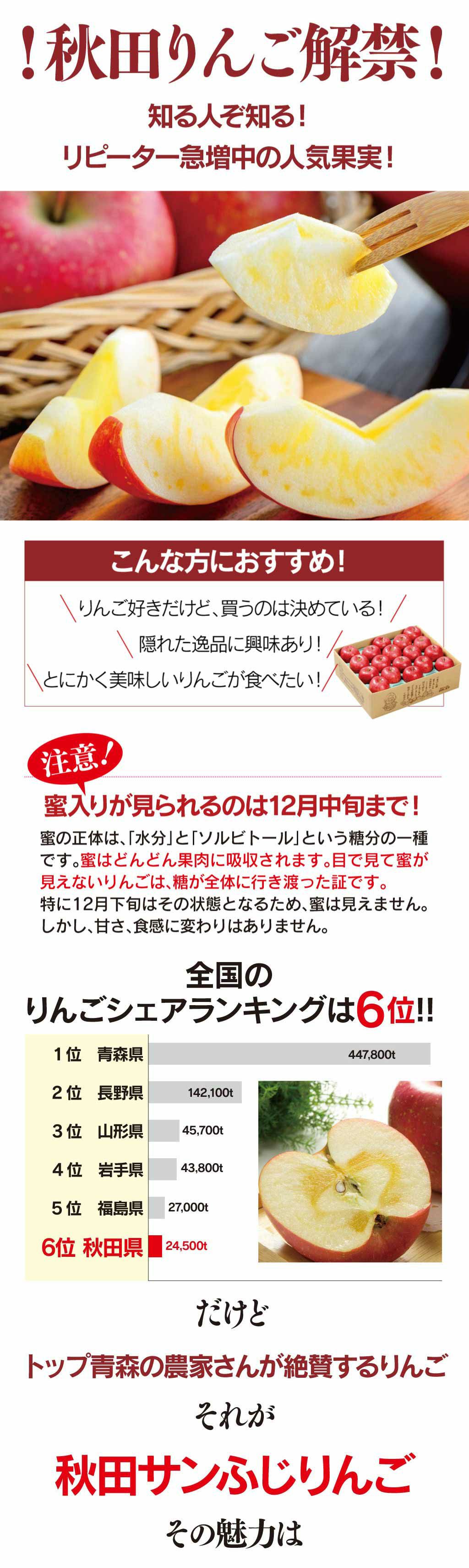 他の画像を見る 果汁と共に今にも溢れ出てきそうな蜜は、食べた瞬間にその甘さが広がります! 秋田産 特選 蜜入り サンふじりんご 4.5kg 約12~16玉 送料無料<12月下旬より順次出荷 お届け:年内もしくは年明け> ギフト最適 【0450599】 価格 ¥ 5,890 税込 産地直送 在庫切れ 詳細を見る お気に入りに登録する