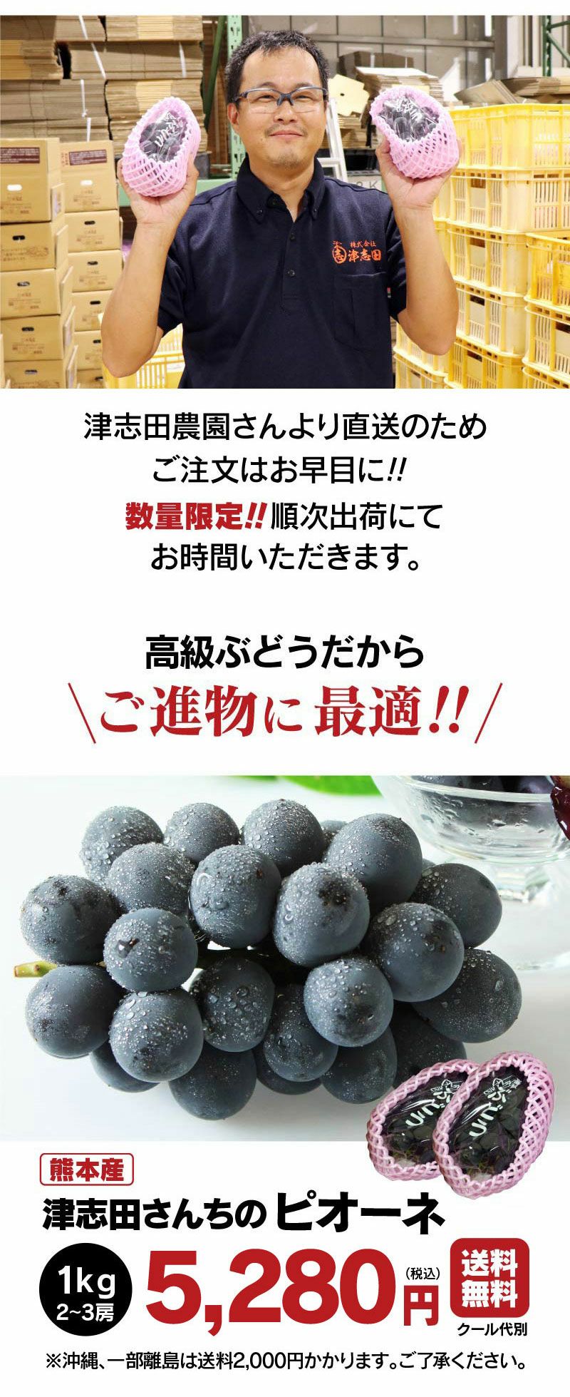 他の画像を見る 朝どれ もぎたて 発送 熊本 熊本県 熊本産 ピオーネ ピオーネ ニューピオーネ 1.5kg(3房から5房) 送料無料 <クール代別> 7月上旬より順次出荷 ぶどう 熊本産 農家直送 プレゼント 大嶌屋(おおしまや) 【0451498】 価格 ¥ 8,500 税込 クール便でお届け 在庫切れ 詳細を見る お気に入りに登録する