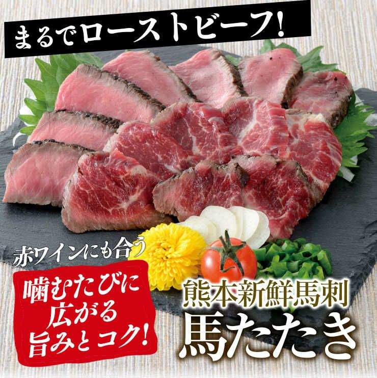 他の画像を見る テレビCM放送中!本場熊本の、新鮮「馬刺し」を食べたことがありますか? 【初回限定】 お試し 赤身上馬刺し3人前セット (広告の品) <同住所に赤身2セット以上で送料無料、クール代350円、赤身3セットで専用醤油、4セットで専用醤油+ユッケ1人前、5セット以上で専用醤油+上馬刺1人前プレゼント・クール代別・冷凍便> 【0308299】 クール代別途 価格 ¥ 1,990 税込 詳細を見る お気に入りに登録する