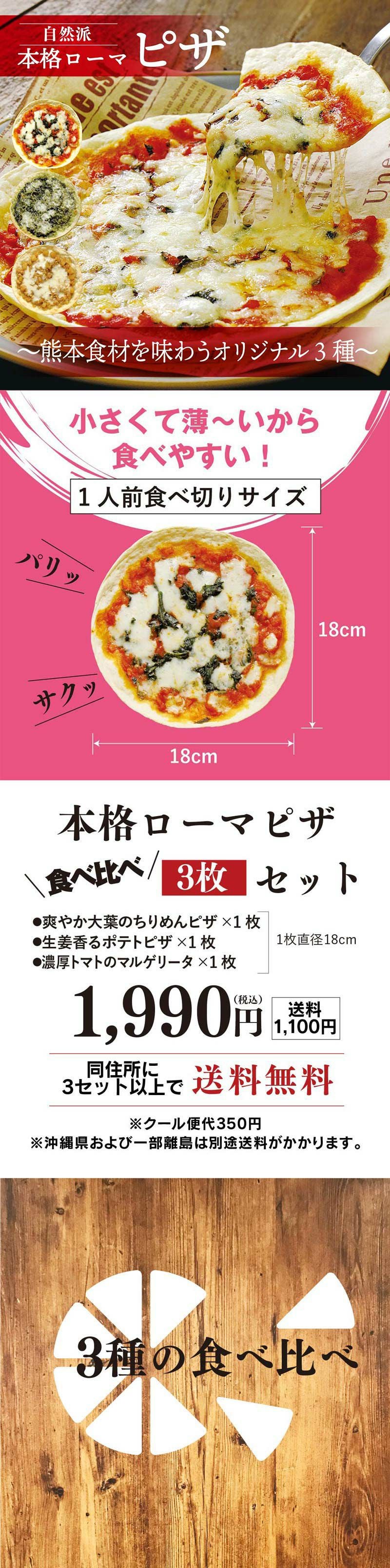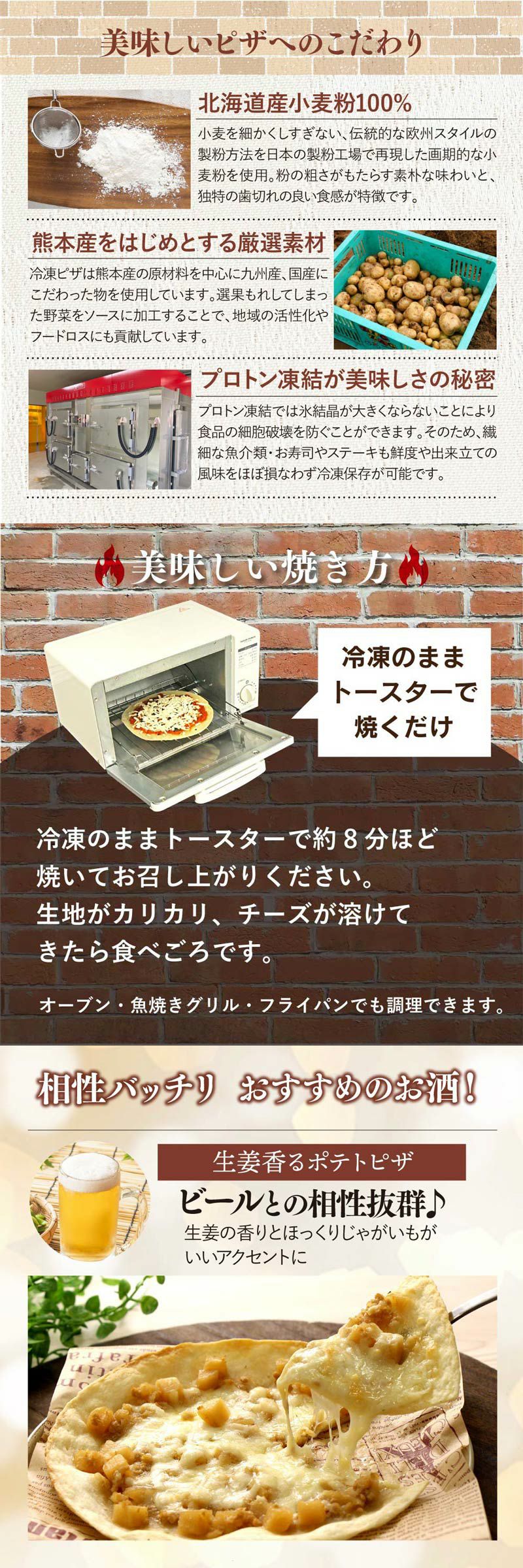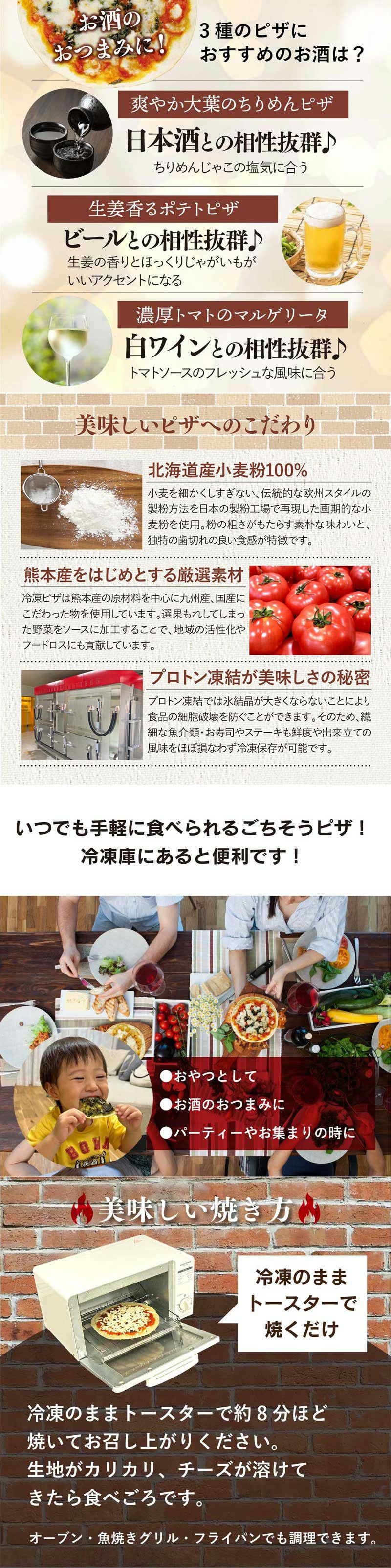 他の画像を見る 食材にこだわった具材を楽しむピザ 冷凍ピザ 熊本食材を味わうオリジナルピザ 3種 <おおしま屋発送・冷凍便・クール代別途> 【同住所に3セット以上で送料無料】パリパリ薄生地 ローマ風 マルゲリータ 生姜ポテトピザ 大葉ちりめんピザ 大嶌屋(おおしまや) 価格 ¥ 1,990 税込 クール代別途 クール便でお届け 在庫切れ 詳細を見る お気に入りに登録する