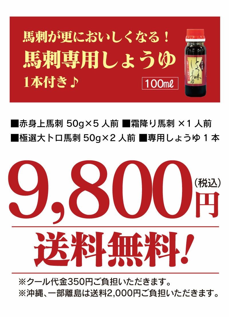 他の画像を見る 贅沢な宴会に…送料無料の豪華馬刺しセット 馬肉 ギフト対応 熊本新鮮馬刺 年末年始特別セット 8人前 専用醤油付き <送料無料・冷凍便・クール代別> 馬刺し 食べ比べ グルメ 大嶌屋(おおしまや) 価格 ¥ 9,800 税込 クール代別途 クール便でお届け 在庫切れ 詳細を見る お気に入りに登録する