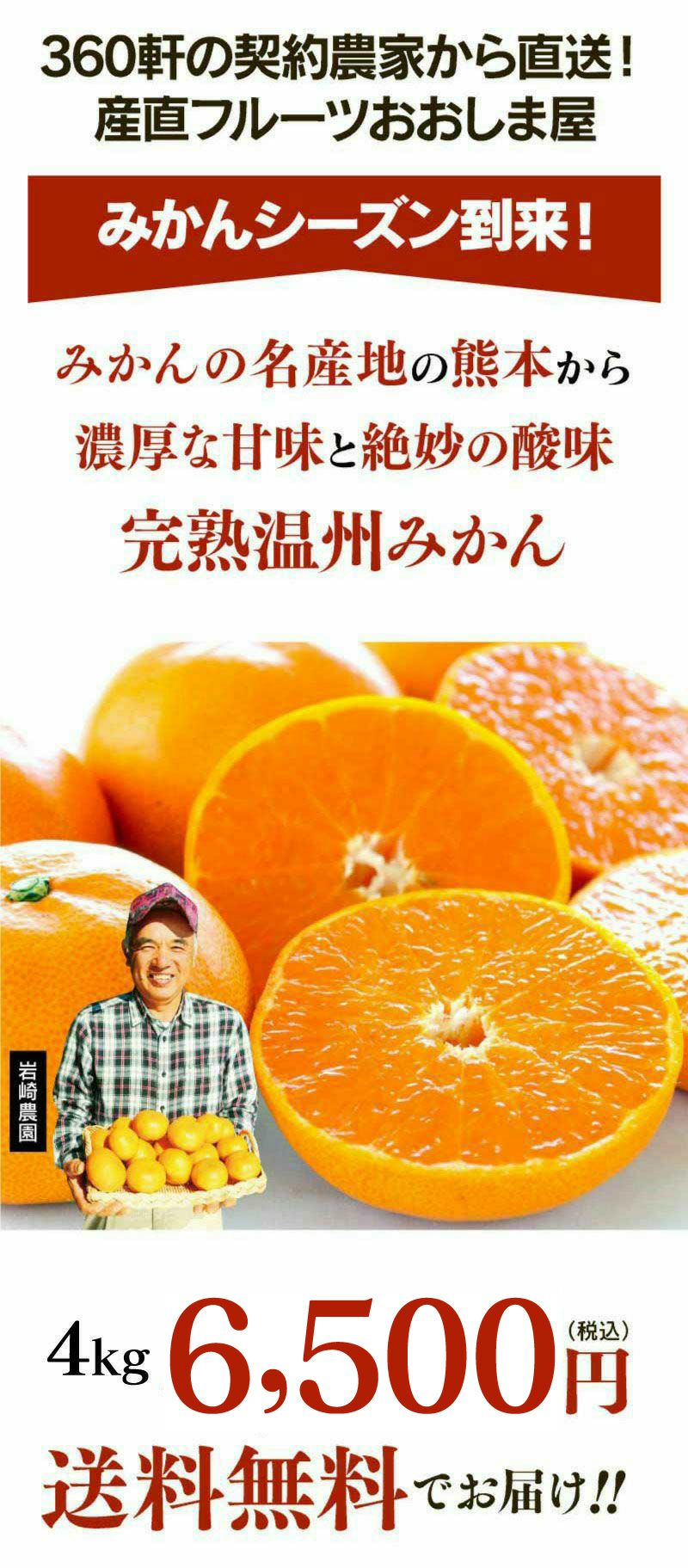 他の画像を見る 甘みと酸味のバランスがたまらない!いよいよみかんシーズン到来!! \まとめ買いキャンペーン/爽熟柑 極早生温州みかん 4kg(40-50玉前後) 送料無料 【10月上旬頃より順次出荷予定】 極早生 ミカン 熊本産 農家直送 果物 フルーツ 大嶌屋(おおしまや) 価格 ¥ 4,980 税込 産地直送 在庫切れ 詳細を見る お気に入りに登録する