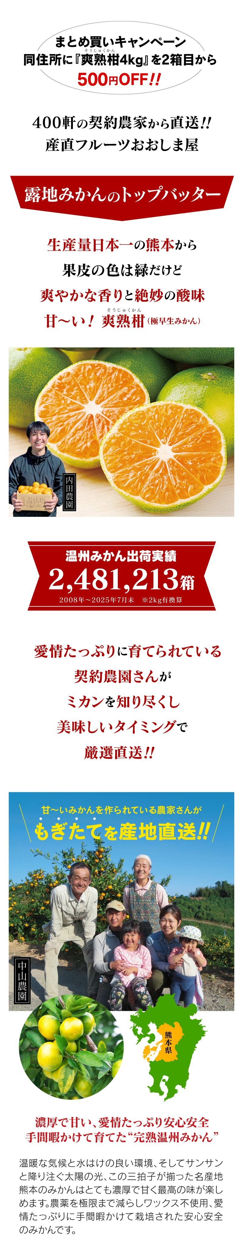 他の画像を見る 甘みと酸味のバランスがたまらない!いよいよみかんシーズン到来!! \まとめ買いキャンペーン/爽熟柑 極早生温州みかん 4kg(40-50玉前後) 送料無料 【10月上旬頃より順次出荷予定】 極早生 ミカン 熊本産 農家直送 果物 フルーツ 大嶌屋(おおしまや) 価格 ¥ 4,980 税込 在庫切れ 詳細を見る お気に入りに登録する