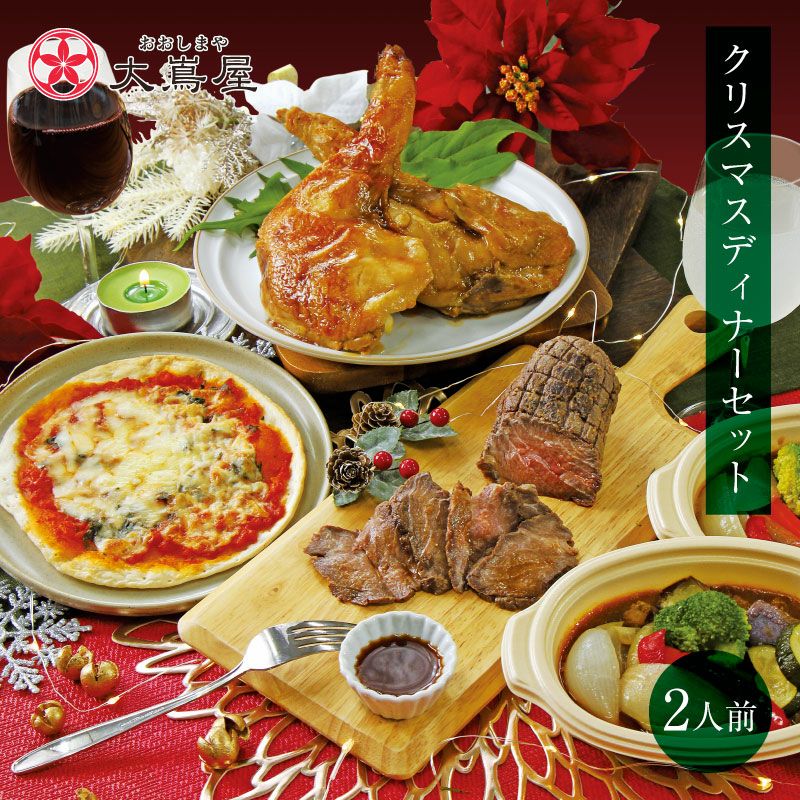 贅沢なクリスマスにぴったりなディナーセットが登場 豪華クリスマスディナーセット 約2人前 送料無料 (クール代別) ローストビーフ あか牛牛すじビーフシチュー ローストチキン マルゲリータピザ ギフト <おおしま屋出荷の冷凍品と同梱可能> 大嶌屋(おおしまや)