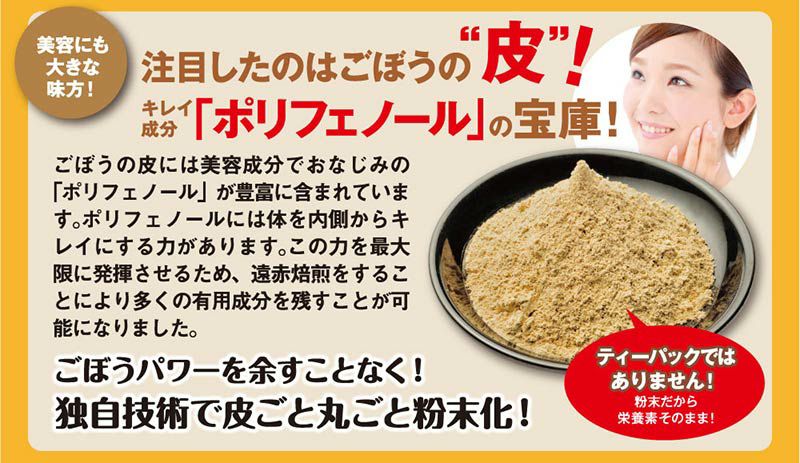 他の画像を見る 食物繊維を丸ごと摂取!粉末ごぼう茶 【単品販売】 粉末 ごぼう茶 1袋 90g(3g×30包) <ポスト投函 送料別> 小包装 丸ごと粉末 国産ゴボウ使用 健康 食品 大嶌屋(おおしまや) 定期価格 ¥ 1,577 税込 カートに入れる お気に入りに登録する