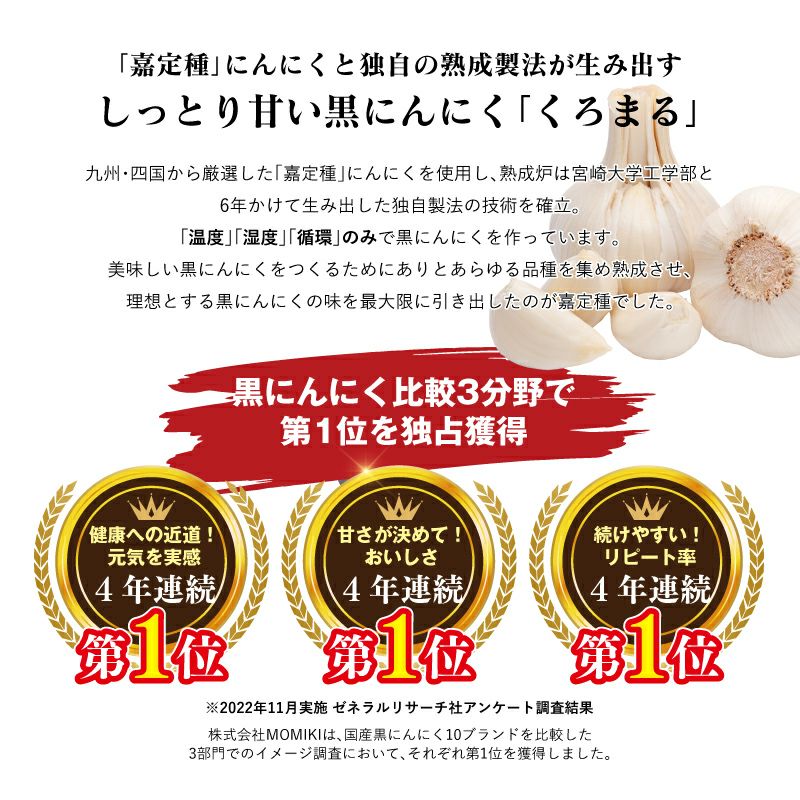 他の画像を見る 九州・四国産の嘉定種(かていしゅ)にんにくを厳選し、 約2週間じっくりと完全無添加で熟成。気になるニオイも少なく、甘くてフルーティー! 黒にんにく くろまる 40g 3袋 送料別 <メール便> 同住所に2セット以上で送料無料 健康食品 グルメ 大嶌屋(おおしまや) 価格 ¥ 1,990 税込 在庫切れ 詳細を見る お気に入りに登録する