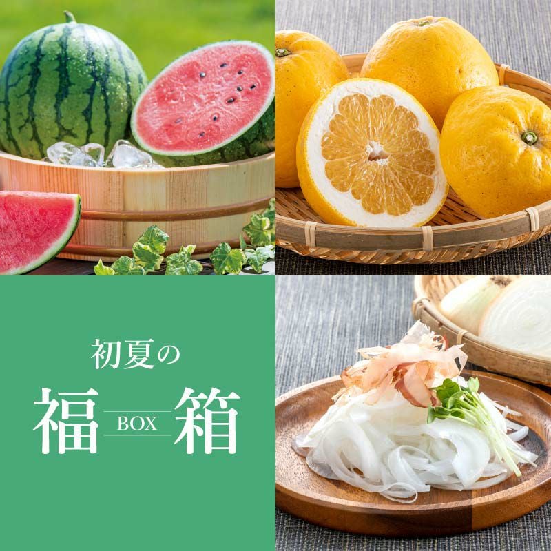初夏の福箱 送料無料 小玉スイカ・ジューシーオレンジ (河内晩柑)・塩たまちゃん(新たまねぎ) <同梱不可>