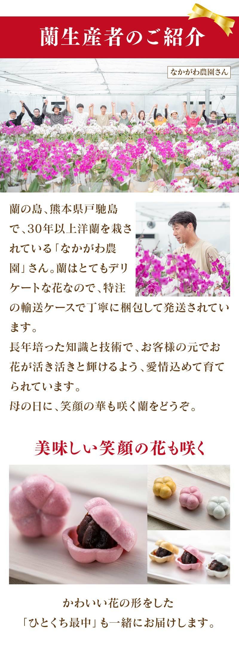 他の画像を見る 蘭の島 熊本 戸馳島から農家直送 母の日 蘭 ミディ胡蝶蘭 「華てまり 和菓子セット」 送料無料 洋ラン 洋蘭 ミニ 胡蝶蘭 風呂敷包み 菓子 もなか スイーツ付き 生産者直送 産地直送 ガーデニング 花 鉢植え おおしまや 価格 ¥ 7,980 税込 在庫切れ 詳細を見る お気に入りに登録する
