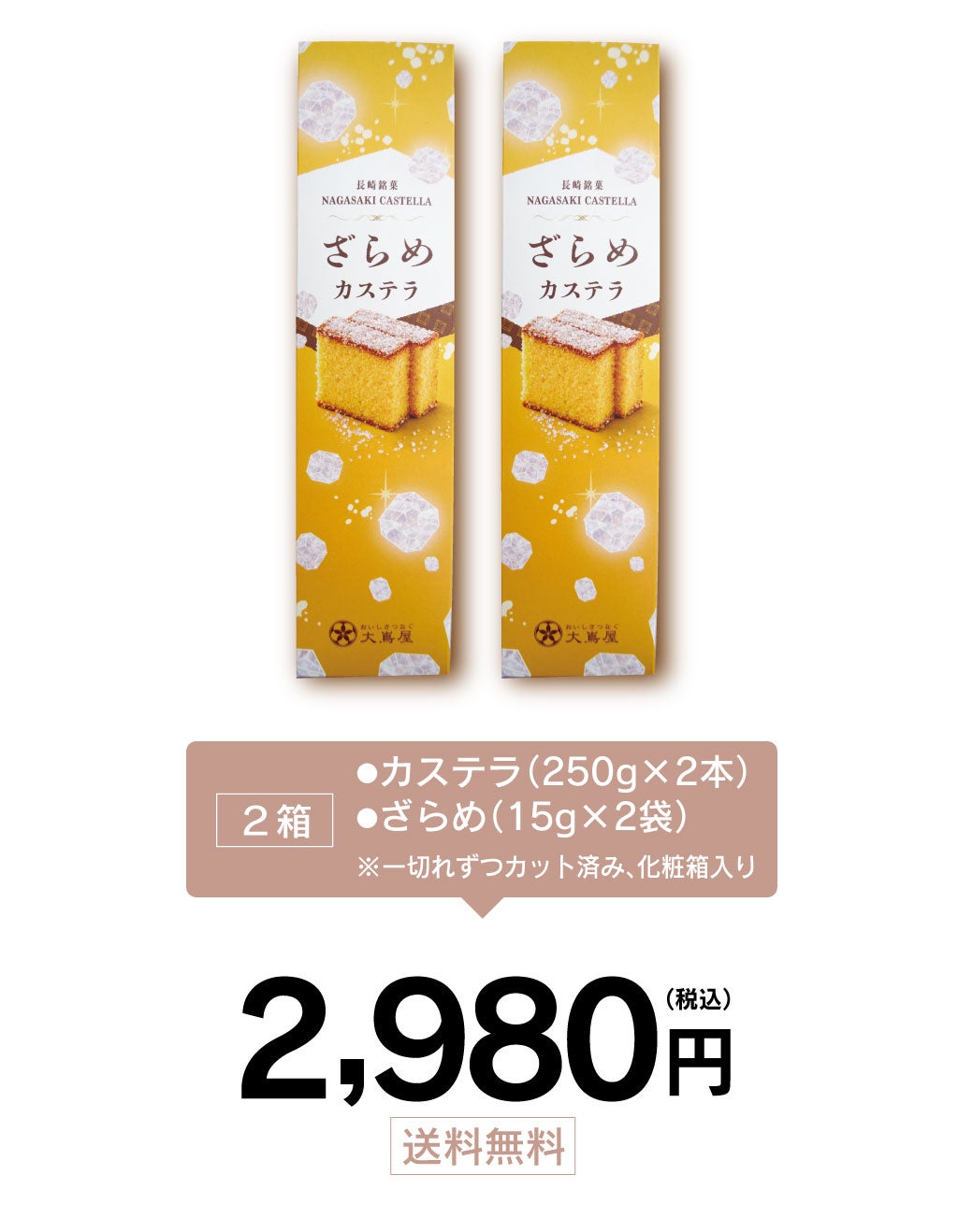 \リニューアル/しゃりふわざらめカステラ 2箱(250g×2、カット済) 送料無料 長崎 かすてら
