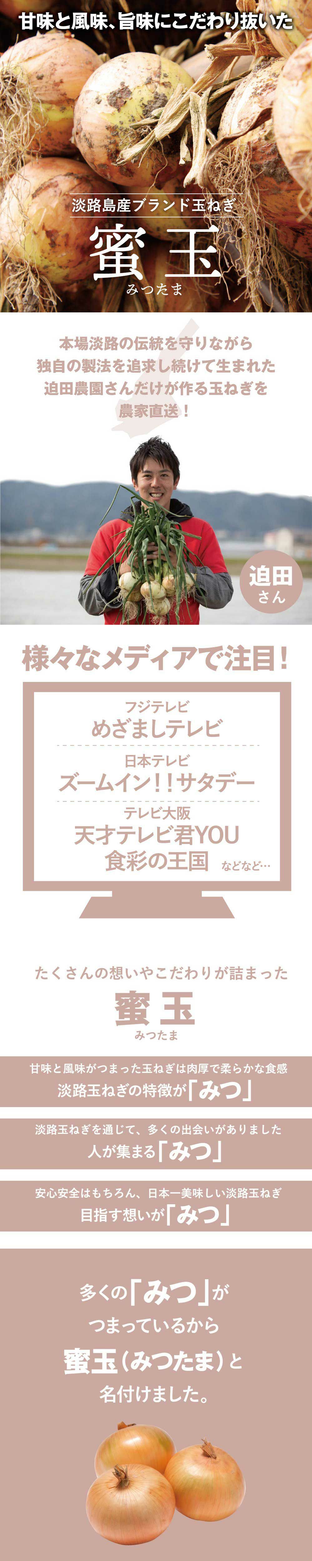 他の画像を見る 淡路伝統を守りながら、独自の製法も追求し続け生まれた迫田農園さんだけが作る 淡路島産 蜜玉 4kg 送料無料 S~3L大小混合(10玉~20玉) <6月下旬より順次出荷> 玉ねぎ たまねぎ 野菜 価格 ¥ 4,190 税込 産地直送 在庫切れ 詳細を見る お気に入りに登録する
