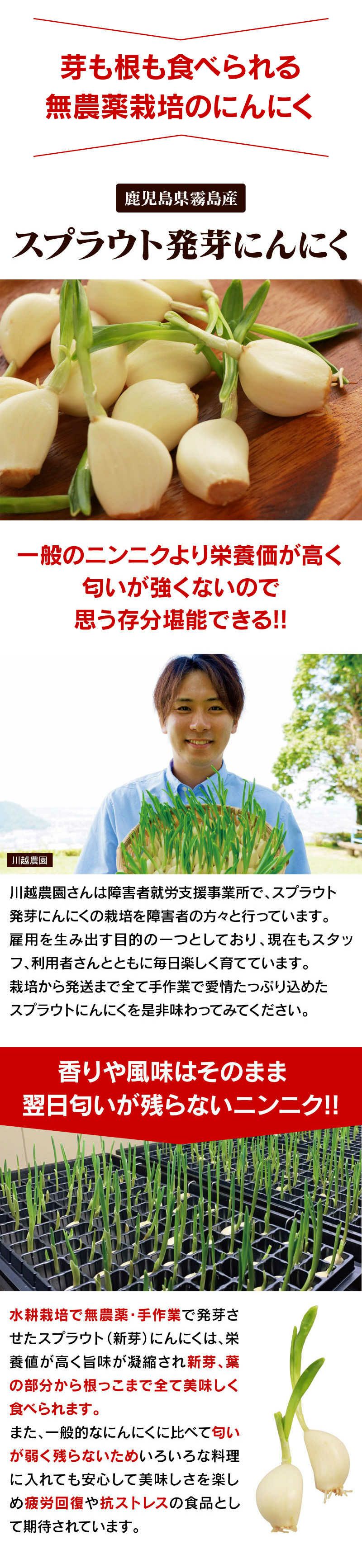他の画像を見る 普通のニンニクより栄養価が高く!!翌日匂いが残らない スプラウトにんにく 50個(10個×5袋) <送料無料> 鹿児島県霧島産 発芽にんにく ニンニク 野菜 川越農園 農家直送 大嶌屋(おおしまや) 定価 ¥ 5,480 のところ 価格 ¥ 4,980 税込 産地直送 カートに入れる お気に入りに登録する
