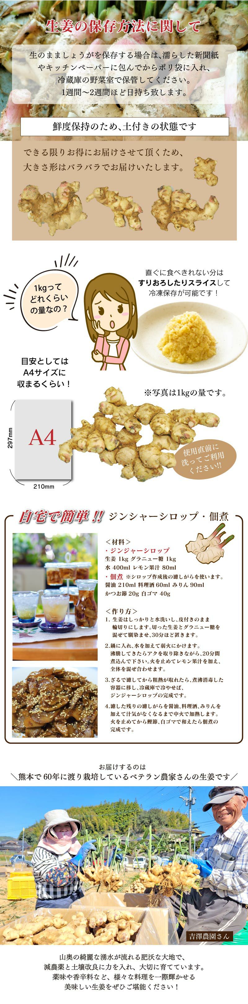 他の画像を見る 生産量2位の熊本県宇城市小川町より風味豊かな生姜をお届け 熊本県産 土付き生姜 1kg 送料無料(11月中旬より順次出荷) ショウガ しょうが 野菜 農家直送 価格 ¥ 2,680 税込 産地直送 カートに入れる お気に入りに登録する