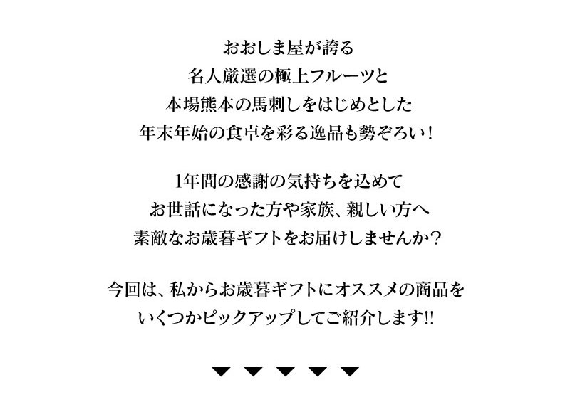 【!残り1週間!】 お歳暮受付終了間近!お急ぎください メールマガジンバックナンバー X Facebook はてブ Pocket LINE コピー 2022.12.02 Copyright© Ohshimaya All rights reserved.