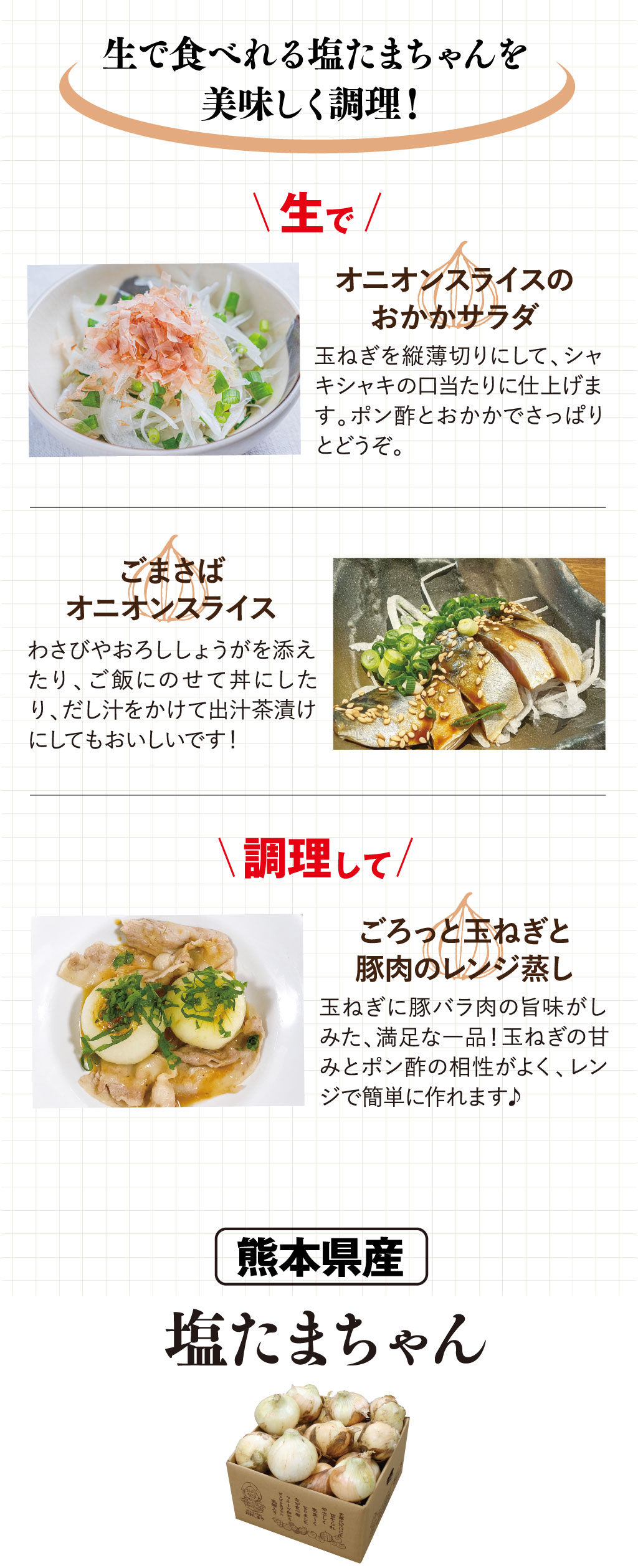 | ■名称 | 塩たまちゃん(サラダたまねぎ) |