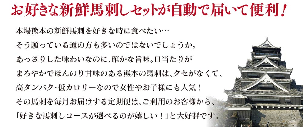 熊本新鮮馬刺【定期便】Bコース「霜降り馬刺セット」