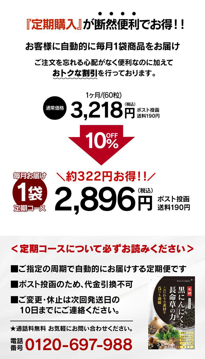 他の画像を見る いつまでも元気で明るい毎日を 【定期便】黒にんにくと長命草の力 1袋60粒 1ヶ月に1回お届け <ポスト投函 送料別> 健康 食品 大嶌屋(おおしまや) 価格 ¥ 2,896 税込 定期販売 初回特別価格あり 詳細を見る お気に入りに登録する