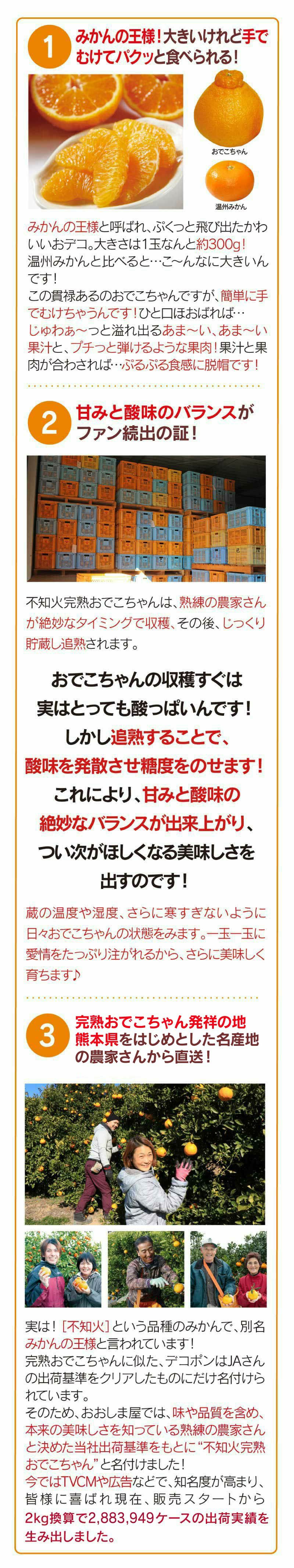 他の画像を見る 当店柑橘人気一位!大きなプリプリ果肉に濃厚で甘い果汁 \まとめ買いキャンペーン実施中/完熟 おでこちゃん 4kg 送料無料 <1月下旬よりご注文順に順次出荷> みかん デコポン と同品種 ミカン 不知火 家庭用 農家直送 産地直送 食品 グルメ 果物 フルーツ 大嶌屋(おおしまや) 価格 ¥ 5,980 税込 詳細を見る お気に入りに登録する