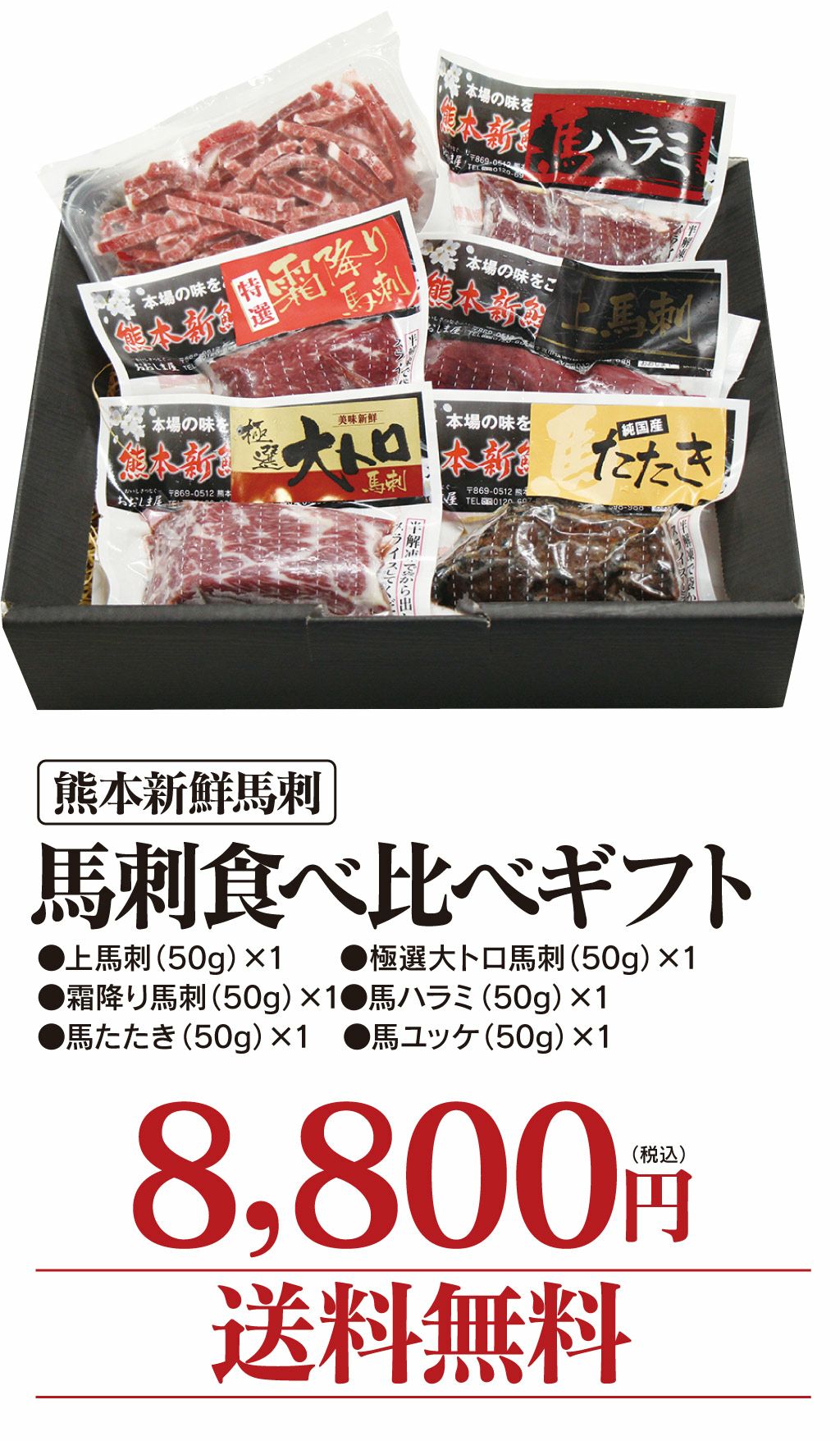 他の画像を見る 本場熊本新鮮馬刺しをご自宅やギフトに、お味見にオススメ 【初回限定】馬刺し6種お試しセット<冷凍便・送料無料・クール代込> 大嶌屋(おおしま屋) 価格 ¥ 5,980 税込 クール代込 詳細を見る お気に入りに登録する