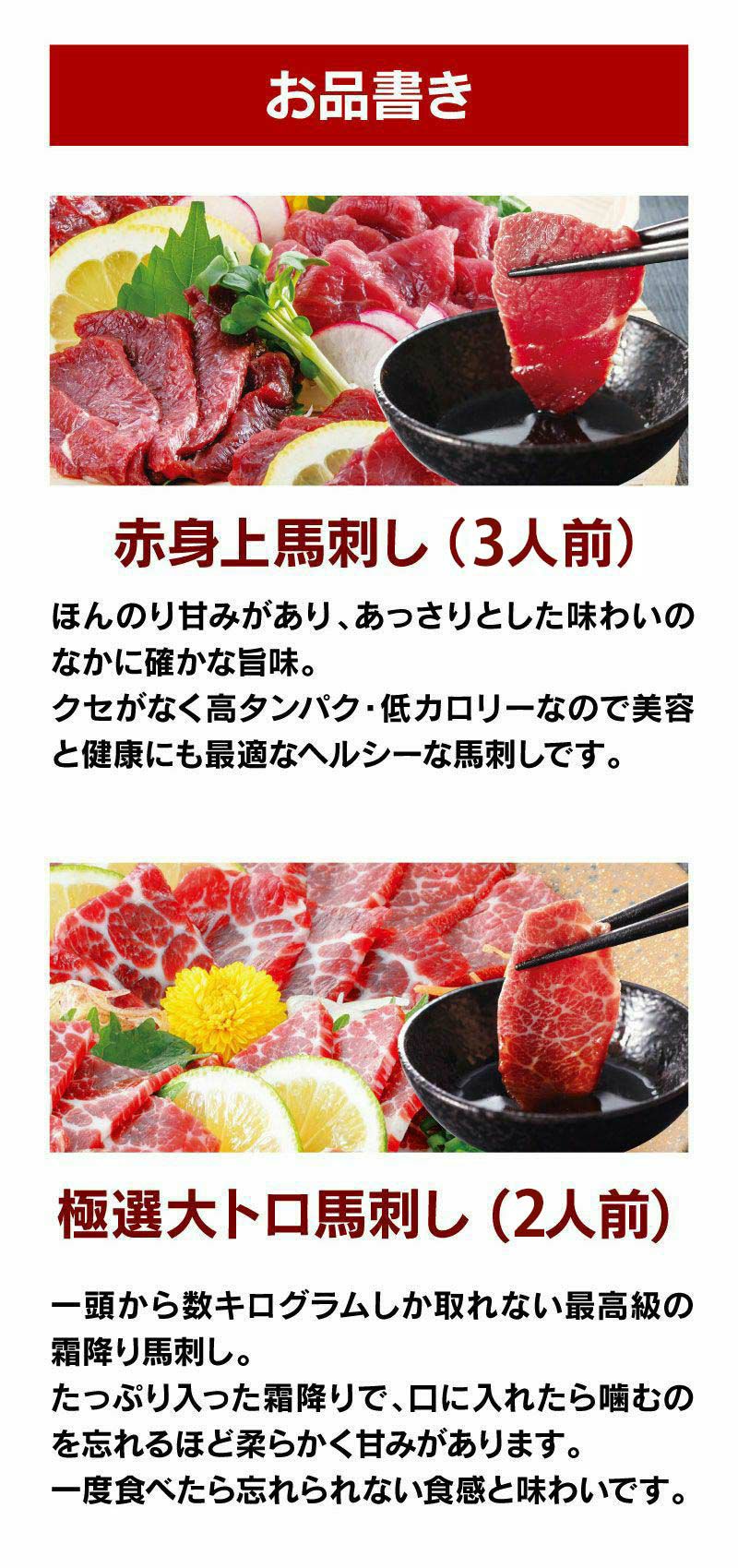 他の画像を見る カット済みだから解凍するだけで食べられる スライス馬刺し 赤身大トロセット 2種類 4人前 合計200g ※同住所に2セット以上でタレプレゼント <送料無料・クール代別・冷凍便・同梱可能> カット済み 刺身 贈り物やギフトに 赤身上馬刺し 極選大トロ馬刺し 馬刺 馬肉 大嶌屋(おおしまや)【0308523】 価格 ¥ 5,700 税込 クール代別途 クール便でお届け 詳細を見る お気に入りに登録する