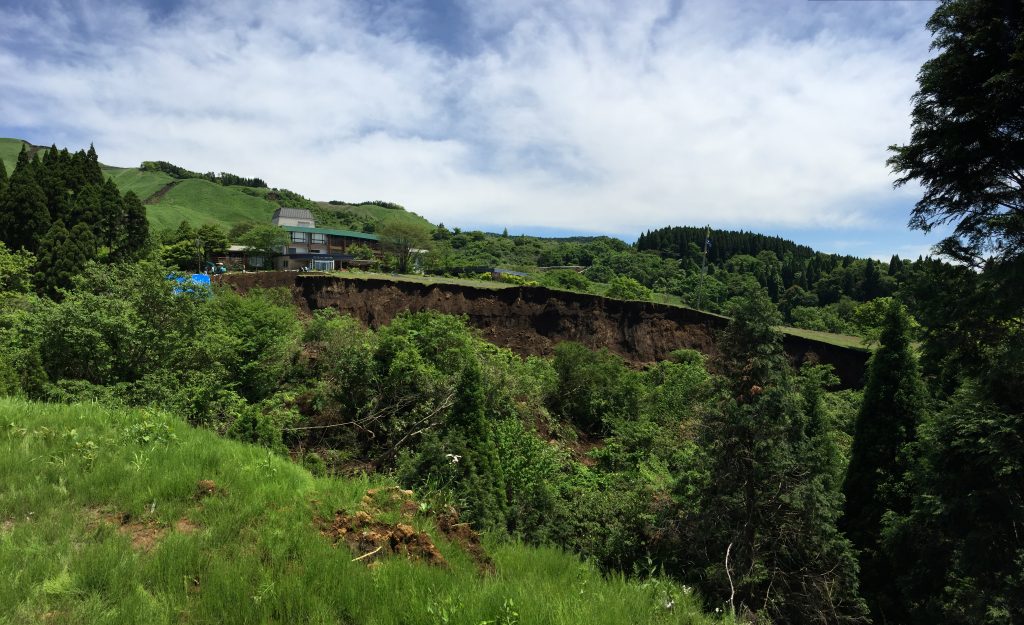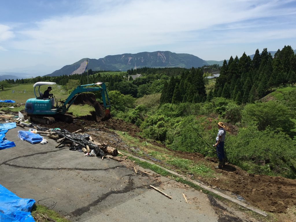 がけ崩れを起こし、さらに6月の大雨被害で阿蘇の裏山が崩れ落ち、
